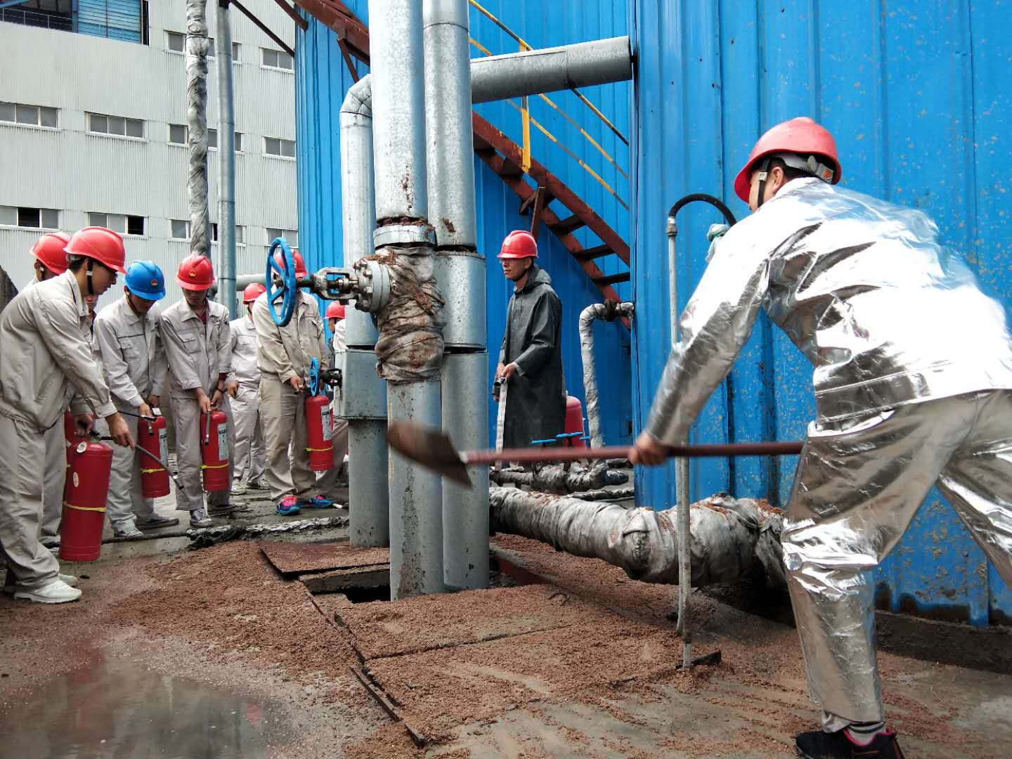 演練是以2#油罐回油管閥門(mén)前法蘭漏油,造成回油閥下方回油管道保溫棉浸油,導(dǎo)流溝內(nèi)少量積油,遇高溫引起火災(zāi)的模擬情景演練。演練過(guò)程中,各職能機(jī)構(gòu)按照預(yù)案要求及時(shí)、有序、緊密配合,堅(jiān)持“把演練當(dāng)作實(shí)戰(zhàn)”,使事故得到有效控制,及時(shí)撲滅火情,避免災(zāi)害的擴(kuò)大,應(yīng)急狀況消除。