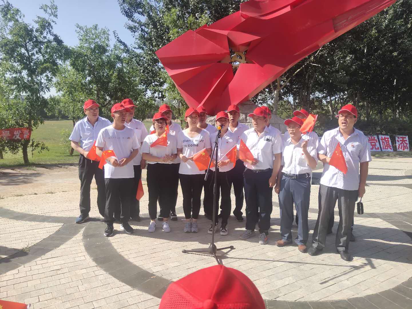黨旗的鮮紅,經(jīng)歷了八十四載的風(fēng)風(fēng)雨雨,依然鮮艷;黨徽的明亮,承載著八十四年的奮斗與夢想,歷久彌新。鮮紅的黨旗上,凝結(jié)著革命英烈的鮮血;共和國的旗幟上,飛揚(yáng)著共產(chǎn)黨員的風(fēng)采,他們,是中華民族永遠(yuǎn)的豐碑!“我們走在大路上”“前進(jìn)前進(jìn)向前進(jìn)”一句句嘹亮的歌聲飄到在黃河金岸的上空,金昱元的當(dāng)員們以他們特殊的方式慶祝當(dāng)?shù)纳?他們要把我最甜美的歌獻(xiàn)給您——我們的母親,偉大的中國共產(chǎn)黨!他們謳歌偉大的祖國母親。