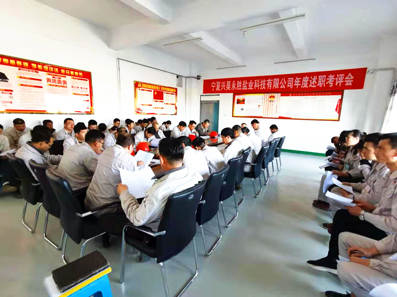 2019年11月13日下午,寧夏興昊永勝鹽業(yè)科技有限公司組織召開了2019年度管理人員述職考評(píng)會(huì),會(huì)議由綜合科科長(zhǎng)主持,公司經(jīng)理層、各級(jí)管理人員及32名員工代表參加會(huì)議。