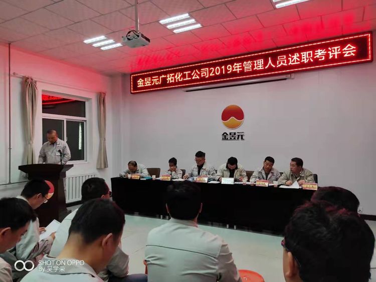 2019年11月19日—20日,廣拓化工公司利用下班時(shí)間組織召開了2019年度管理人員述職考評(píng)會(huì),會(huì)議由興昊黨支部副書記王志杰主持,化工公司總經(jīng)理,副總經(jīng)理,安全總監(jiān),副總工程師出席,32名述職人員及110名職工代表參加。
