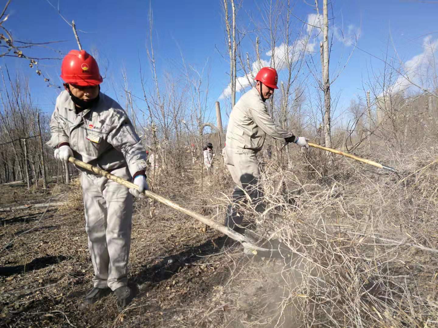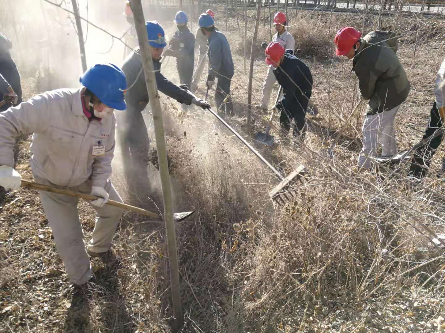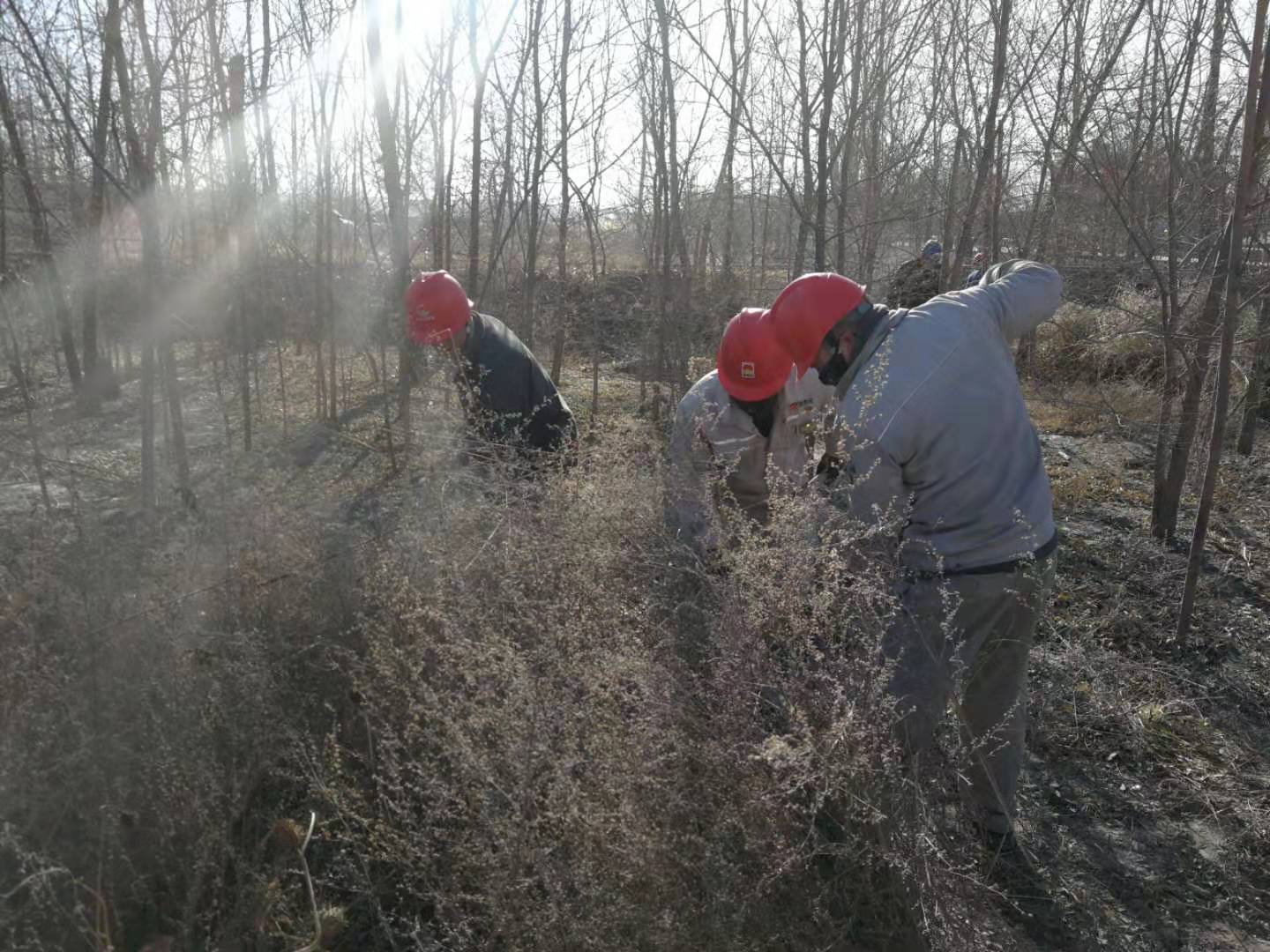 嚴(yán)寒的冬天已經(jīng)來臨,后山樹林落葉堆積較厚,干燥的枯草在風(fēng)中搖曳,存在較大火災(zāi)風(fēng)險(xiǎn)隱患。結(jié)合集團(tuán)公司正在開展的第二批“不忘初心、牢記使命”主題教育實(shí)踐活動(dòng),青銅峽片區(qū)集中組織全體黨員干部和日勤職工開展后山樹林落葉、枯草清理工作。