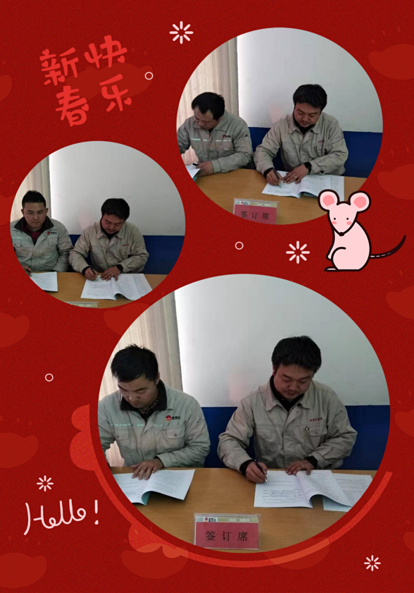 副總經(jīng)理梁軍與安環(huán)生產(chǎn)科、成品裝置和調(diào)度室負責人簽訂2020年生產(chǎn)經(jīng)營管理目標責任書