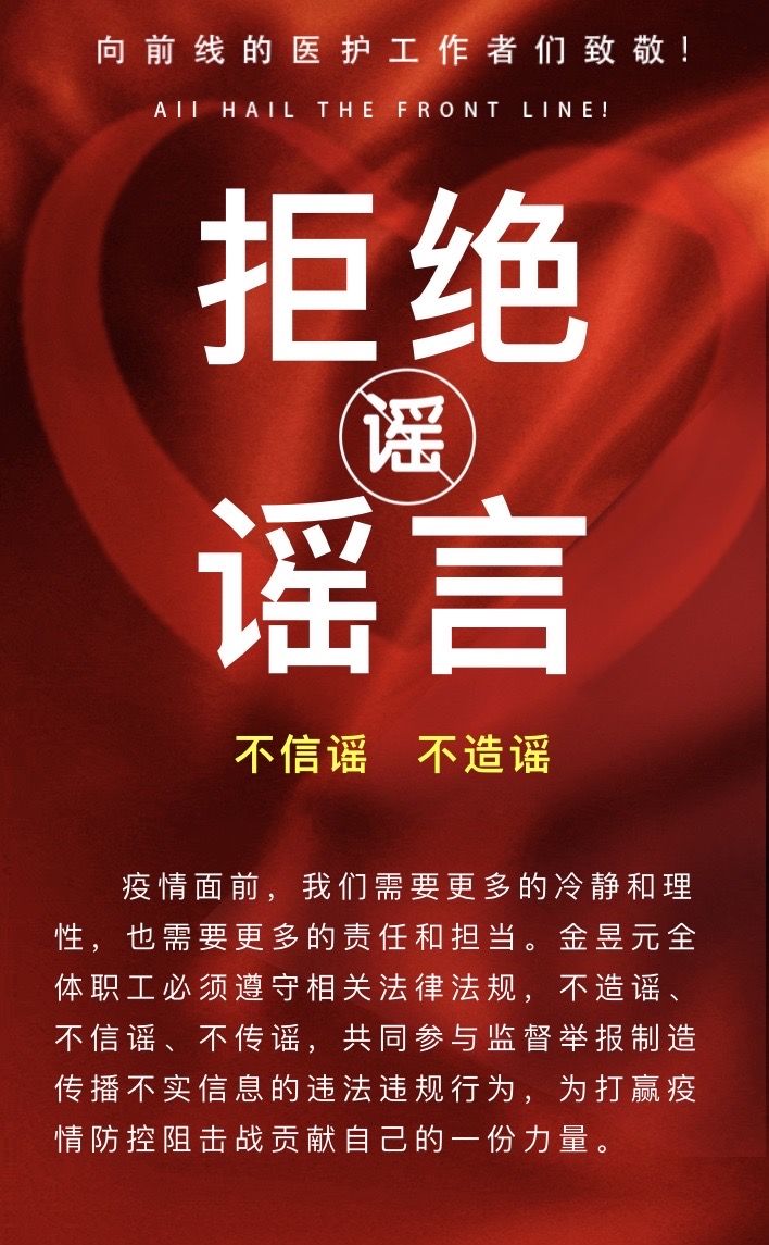 自新型冠狀病毒疫情阻擊戰(zhàn)打響以來,金昱元全體職工團(tuán)結(jié)一心,眾志成城、抗擊疫情,一股股愛的暖流匯聚成了打贏疫情防控阻擊戰(zhàn)的強(qiáng)大力量。