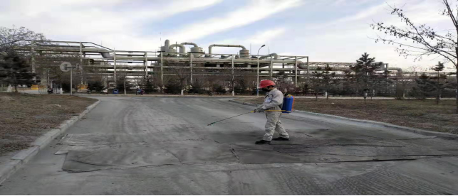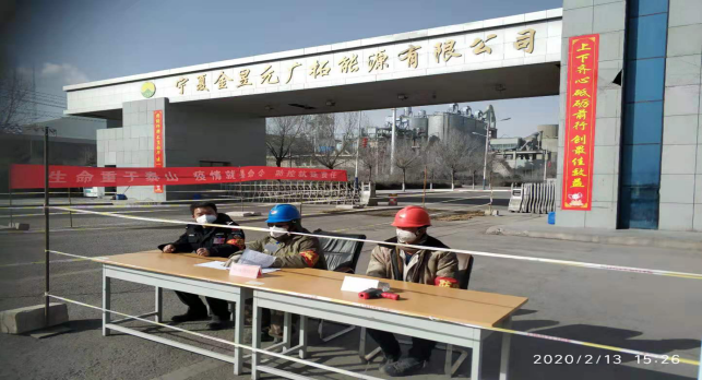 在原料堆場,檢查登記、消毒,全力進行“疫情”防控工作。
