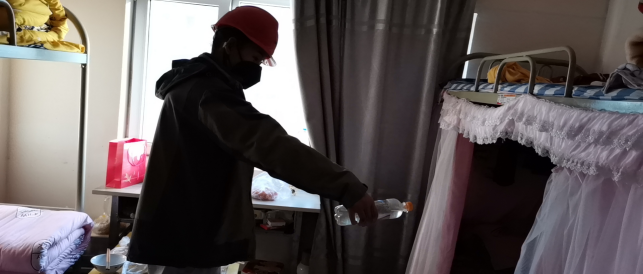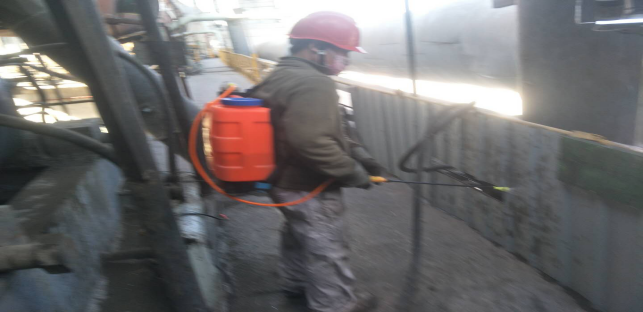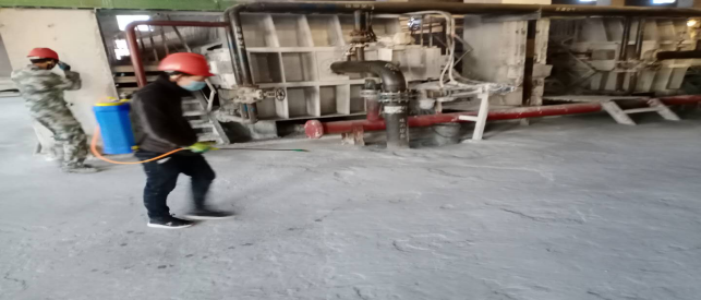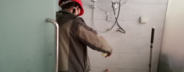 對廠區(qū)衛(wèi)生間消毒。