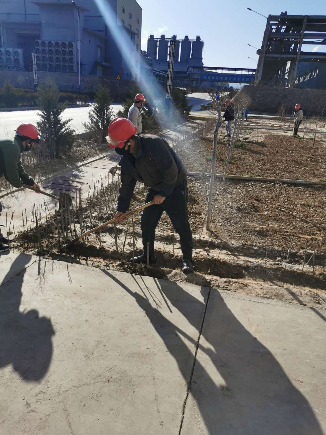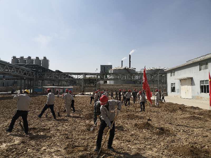 疫情防控下,黨員帶頭堅(jiān)守一線不松懈;す军h支部書(shū)記賈存富帶頭奔赴綠化作業(yè)一線,組織各單位黨員對(duì)液化崗位土地進(jìn)行平整,身體力行踐行“不忘初心,牢記使命”。