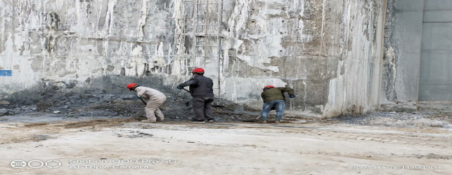 在回轉(zhuǎn)窯,做好更換窯磚前期準(zhǔn)備工作——清理深挖4米處窯皮、窯磚。