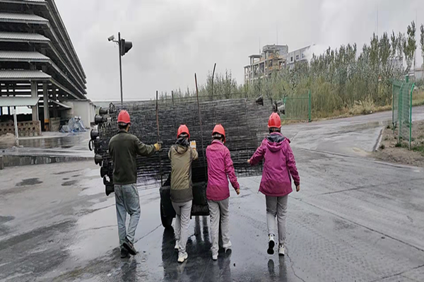 細(xì)雨中,早到的操作工將成品庫(kù)西側(cè)的所有舊龍骨清理至機(jī)修廠房前面空地處,一千多條龍骨,在他們?cè)谛⌒〉陌遘嚿弦卉囈卉嚨睦\(yùn)完,防砸鞋和褲管都已濕透,但看著清理完整齊的現(xiàn)場(chǎng),所有的辛苦頓時(shí)煙消云散,掛滿灰塵的臉上洋溢出笑容。
