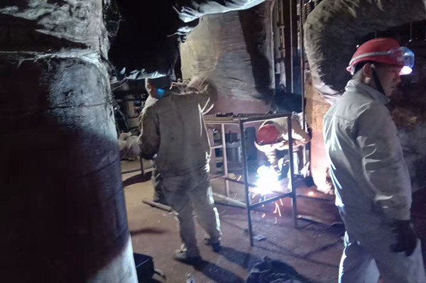 此時隆隆的吊車聲響徹在檢修現(xiàn)場。檢修作業(yè)最關(guān)鍵的時刻到來了,只見維修班長熟練用割槍切割著設(shè)備與框架的支點,通紅的鐵水四處飛濺不時落在他的衣服上,留下黑色的小孔。他也顧不得這些,迅速完成了設(shè)備與框架的切割,其他人員也各司其職忙著斷口。隨著吊鉤的慢慢升起設(shè)備輕松與框架分離,由于空間狹小吊臂的活動空間有限,吊裝作業(yè)顯得異常的緩慢,這對長時間在寒冷的室外作業(yè)人員是個極大的考驗,伴隨著指揮人員最后的口令下達(dá),舊的再沸器設(shè)備被緩緩地放到地上。此時已過中午時分,雖然大家早已饑腸轆轆,但是每個人的臉上洋溢著笑容,因為他們深深的懂得,只有經(jīng)歷了艱辛的拼搏,才會收獲成功的喜悅。