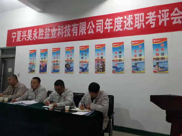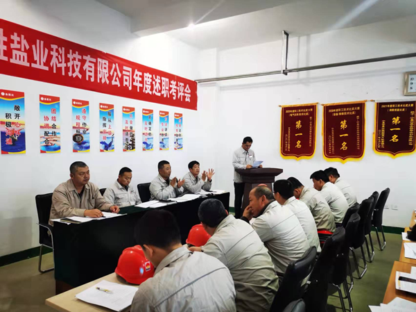 2021年12月2日下午,寧夏興昊永勝鹽業(yè)科技有限公司組織召開2021年度管理人員述職考評(píng)會(huì),聽取管理人員履職情況、管理目標(biāo)和重點(diǎn)工作完成情況、分管工作和本人履職中存在問題及下一年的工作思路。