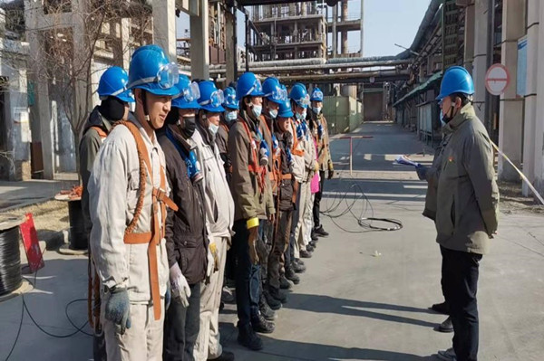 元旦過后,裝置領(lǐng)導(dǎo)開會(huì)安排放置光纖的任務(wù),各級人員迅速投入其中,每天臨近上午下班前,相關(guān)班組辦理好登高證、檢修作業(yè)證、作業(yè)方案及工作危害分析,把需要放置的光纖盤拉到指定位置擺放整齊,準(zhǔn)備好五樁一門和警戒帶,下午1點(diǎn)30分,所有作業(yè)人員系好安全帶,戴上防毒口罩、棉帽子到達(dá)現(xiàn)場,落實(shí)完各項(xiàng)安全措施,確認(rèn)具備條件,作業(yè)負(fù)責(zé)人現(xiàn)場進(jìn)行安全技術(shù)交底,交底完畢后,大家有序地爬上橋架,下面的人有拉光纖的,做標(biāo)記的,往上送的,口哨一響,大家鼓勁使力、齊步向前,光纖一段一段整齊的放置于橋架內(nèi),在這幾天放置光纖的過程中,乙炔站和六萬噸離子膜光纜距離較長,好幾位年長的師傅并沒有因?yàn)槟挲g大而推脫,同樣是系好安全帶,穿戴齊全防護(hù)用品,早早地上到橋架上,找到合適的位置,安全帶系掛牢靠后,聽從指揮,保證了放置光纖的任務(wù)提早完成。