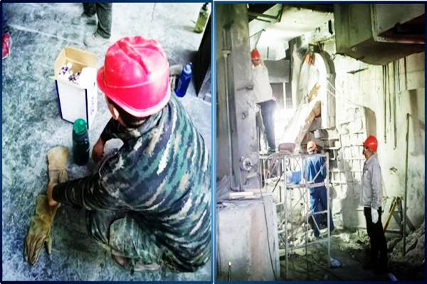 時光如白駒過隙,1#、2#電石爐已安全穩(wěn)定生產(chǎn)六年有余,爐內碳磚、耐火磚燒損嚴重,已達到大修周期,加之五、六月份大量使用佳成礦山石料,爐內鐵水多,四臺電石爐爐眼附近耐火磚、碳磚不同程度燒損,尤其是1#爐3#眼、2#爐3#眼,爐眼上方爐壁被鐵水擊穿,出爐工作不能正常進行,嚴重影響到電石爐的安全穩(wěn)定運行;為盡快消除制約安全生產(chǎn)穩(wěn)定運行的隱患問題,為電石爐穩(wěn)定運行提供強有力的保障,在公司統(tǒng)一部署下,自五月底開始,集各裝置維修工力量由電石一裝置組織對兩臺爐爐壁進行修復。