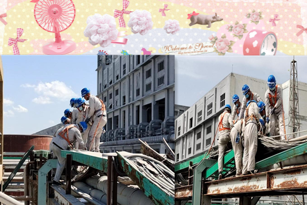 高溫天氣,尤其到了下午兩三點,太陽像火爐一樣燒到正旺的時候,大家暴露在烈陽下,這個時候最容易中暑,提醒作業(yè)人員及時補充水分,輪換休息,保證體力跟得上工作節(jié)奏。因為先要拆除掉銹蝕掉的橋架,鋸弓鋸,撬杠敲打,用繩子拽,還要注意橋架的隨時掉落,高空作業(yè)精神緊繃,每個人都是汗流浹背。腐蝕掉的橋架拆除后,新的橋架不斷調(diào)整安裝位置,再用螺絲緊固,就這樣,電纜橋架被一節(jié)節(jié)拆除又被一節(jié)節(jié)安裝上,他們頭頂?shù)乃{色安全帽在陽光下來回移動著,就像一串跳躍著的藍色音符。