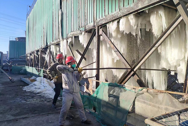 走進(jìn)現(xiàn)場(chǎng),我們看到的是工友們忙碌的身影,在嚴(yán)寒下,那一張張掛著“兩鬢斑白”和“爬滿灰塵”的臉龐;讓我們看到了他們對(duì)待檢修清冰作業(yè)精、專、細(xì)的工作態(tài)度。平時(shí)工作中他們沒(méi)有太多的言語(yǔ),只是埋頭苦干,不敢有絲毫懈怠,也不能有半點(diǎn)疏忽。是我們最樸實(shí)無(wú)華的一線工友,也是大家常說(shuō)的,最可愛(ài)的人,我們身為金昱元這個(gè)大家庭的成員,這是我們的義務(wù)和責(zé)任,工友們?cè)缫褜ⅰ柏?zé)任”二字深深地刻在檢修作業(yè)的每一個(gè)環(huán)節(jié)。為保證檢修清理作業(yè)質(zhì)量,他們沒(méi)有在寒冷面前選擇草草了事,依然一絲不茍的檢查著檢修清理工作的每處細(xì)節(jié),一雙雙沾滿油污被冰水打濕的衣袖,無(wú)不彰顯著一種敬業(yè)精神。清理檢修合格的設(shè)備,為了配合裝置的安全平穩(wěn)運(yùn)行,為了現(xiàn)場(chǎng)設(shè)備冷卻塔填料的完好,為了循環(huán)水系統(tǒng)的正常降溫,為了現(xiàn)場(chǎng)工藝指標(biāo)的合格,他們忘卻了勞累,忘卻了休息,用他們勤勞的雙手和吃苦耐勞的拼搏精神在檢修清理現(xiàn)場(chǎng)忙碌著。