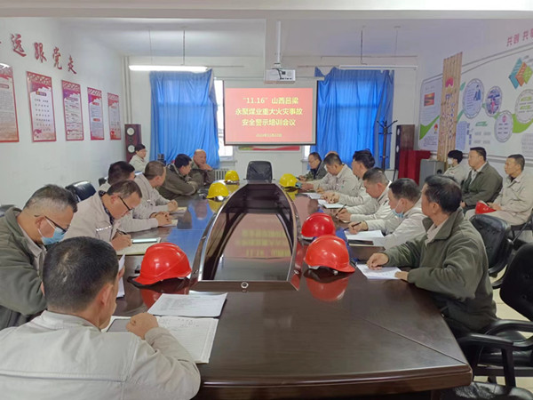 11 月 16 日,山西呂梁市永聚煤礦一辦公樓發(fā)生火災,造成 26 人遇難,38 人受傷。事故發(fā)生后資源再生公司由總經(jīng)理牽頭、安環(huán)科組織觀看事故現(xiàn)場視頻報道。為切實壓緊壓實各級管理人員消防責任,提高全員火災預防和消防安全意識,切實防范重大消防風險隱患,深刻吸取事故教訓,舉一反三、警鐘長鳴,結(jié)合公司實際生產(chǎn)情況,扎實開展生產(chǎn)現(xiàn)場、辦公區(qū)和生活區(qū)消防安全風險隱患大檢查大整治活動。