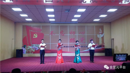 會后,以“不忘初心跟黨走”為主題,舉辦了慶祝建黨97周年文藝演出,演出圍繞“頌歌獻給黨”這一主要演出內(nèi)容,以歌舞、大合唱、詩朗誦、四重唱為主要表現(xiàn)形式,還自編創(chuàng)作了小品《我想入黨》,音樂快板《幸福金昱元》,營造了歌頌黨、歌頌人民、歌頌改革開放和企業(yè)發(fā)展取得的偉大成就,暢想新時代、中國夢。