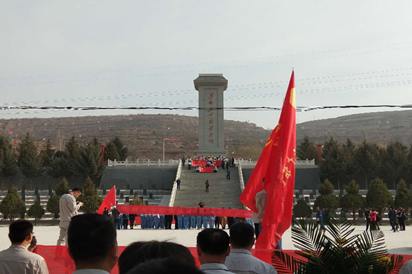 烈士紀念碑巍然聳立,烈士陵園內莊嚴肅穆,公司黨員代表在烈士紀念碑前,整齊列隊、靜默肅立;顒訌恼犆C立、行注目禮開始,集團公司黨委副書記王立軍宣布祭掃活動開始,并代表公司向烈士紀念碑敬獻花籃,參加活動全體人員默哀一分鐘。全體黨員重溫了入黨誓詞,共同學習了革命烈士的英勇事跡。