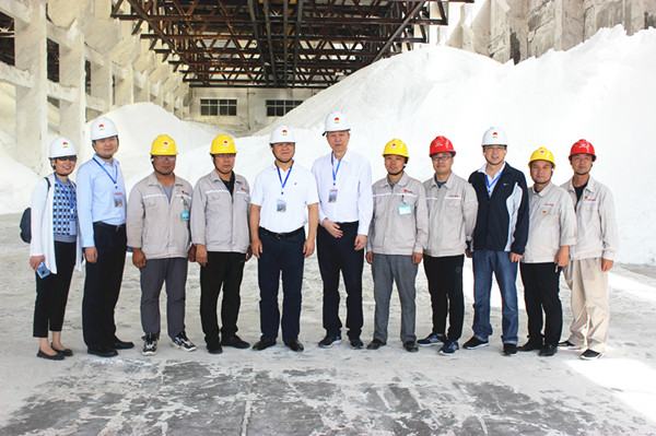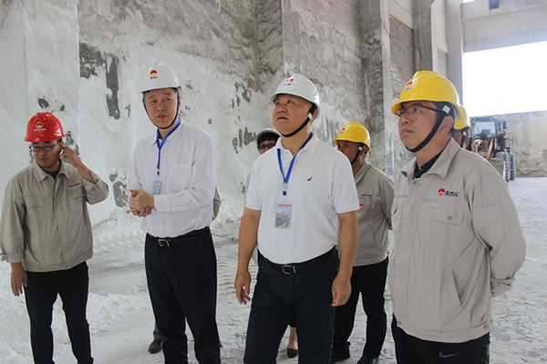 白鴻一行先后到興昊永勝鹽業(yè)公司鹽庫、鹽硝裝置、熱力裝置、企業(yè)文化展廳等地進(jìn)行實(shí)地調(diào)研,并在鹽庫合影留念。