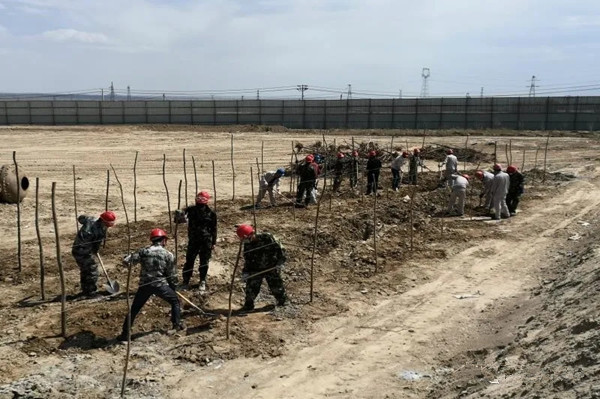 參加植樹(shù)的職工一到植樹(shù)現(xiàn)場(chǎng),便投入到忙碌的工作當(dāng)中,大家爭(zhēng)先恐后揮鍬挖土、放苗回填,現(xiàn)場(chǎng)一片繁忙景象。