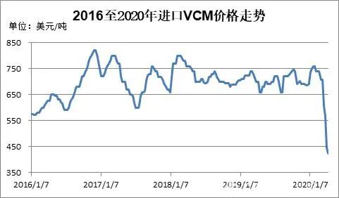 在需求增長和美國頁巖氣革命的推動下,近年來,全球乙烯行業(yè)進入新一輪擴能高峰期,供應趨向?qū)捤,乙烯市場運行中樞下移。油價暴跌,乙烯的成本端支撐塌陷,乙烯市場加速下跌,乙烯法PVC的生產(chǎn)成本進一步下降。截至2020年4月上旬,亞洲乙烯CFR東北亞報405至415美元/噸,較年初下跌逾40%。全球VCM市場供需相對平衡,價格波動幅度較小。2018年至2020年初,亞洲乙烯CFR東北亞價格大體在650-800美元/噸之間震蕩。受油價下跌影響,VCM價格大跌,2020年4月上旬,亞洲乙烯CFR東北亞報423-425美元/噸,較年初下跌近40%。