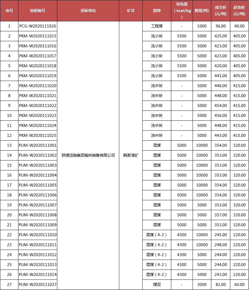 一、韓家灣煤礦產品信息(最新價格)