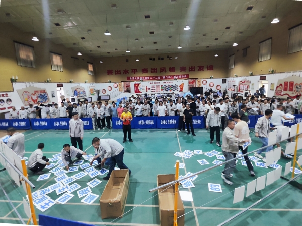 隨著裁判一聲令下,企業(yè)理念拼字比賽迎來激動人心的時(shí)刻。各參賽隊(duì)員不急不躁、有條不紊,大家集思廣益、默契配合,在最短時(shí)間內(nèi)準(zhǔn)確拼出“踐行綠色發(fā)展 留駐青山綠水”“山水昱心 共創(chuàng)好未來”“安全就是幸福 安全就是效益”等橫幅。