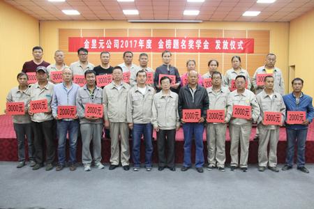 今年獲得獎學金的員工子女共有24名,向考取一本院校的11名員工子女每人發(fā)放獎學金3000元,考取二本院校的13名員工子女每人發(fā)放獎學金2000元,本次“金榜題名獎學金”共發(fā)放59000元。